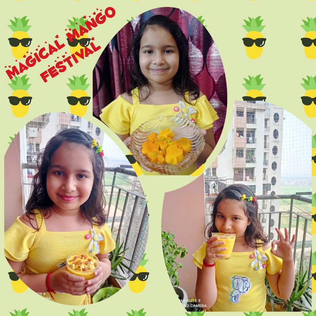 a fresh stock of Alphonso. This was followed by ‘Mango Mania,’ wherein the students relished a variety of mango delicacies. The teachers made them aware of the values/benefits of this natural fruit. Students enhanced their vocabulary related to mango.